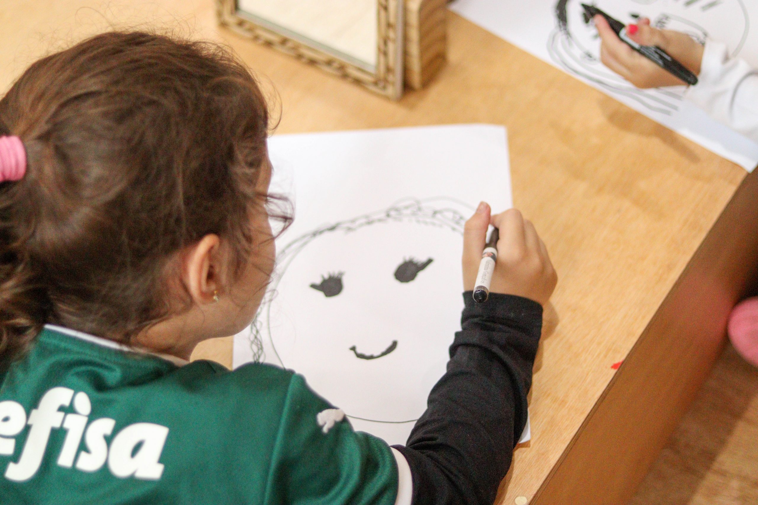 Nesta vivência em nosso “Território do desenho”, os alunos do Infantil IV produziram seu autorretrato, observando com atenção suas próprias características.