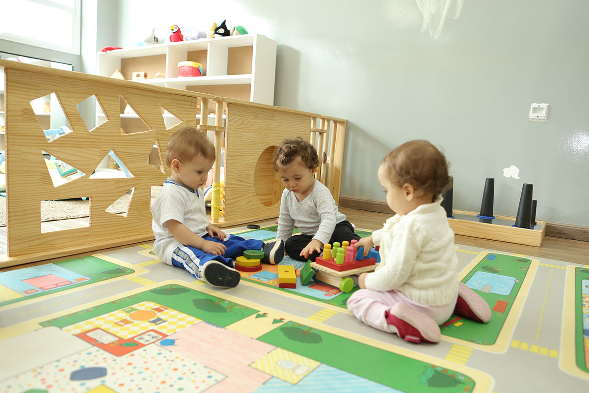 Do mobiliário aos materiais, da organização dos espaços à programação da rotina, da orientação e acompanhamento das educadoras à garantia dos cuidados essenciais próprios desta fase, tudo está estruturado de forma que o bebê se desenvolva integralmente e de maneira saudável e segura.